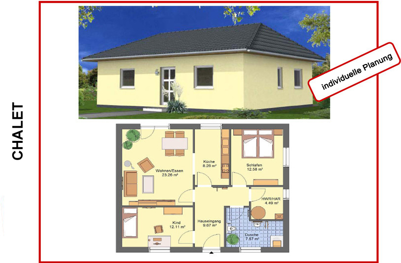 Kein Problem. Sie können jeden Grundriss individuell verändern, oder auch gerne einen eigenen Entwurf erstellen. Wir werden dann in unserer Planungsabteilung Ihre Wünsche detailgetreu umsetzen, sofern es die behördlichen Vorgaben und Grundstücksgegebenheiten zulassen.
